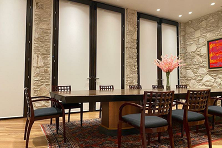 Our Somfy motorized window shades provide seamless automation, allowing Warren to control natural light and privacy with a touch of a button. The sleek and modern design of these shades adds an extra layer of elegance to his already luxurious interior. With multiple control options, including remote control and smartphone integration, Warren has complete control over his window treatments, whether he's at home or away.